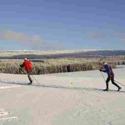 Der Einstieg in die Loipe beginnt auf der anderen Straßenseite. Folgen Sie zunächst den blauen Loipen-Schildern bitte im Uhrzeigersinn. Sie befinden sich jetzt noch auf der Mühlenbergloipe. Sie kommen an eine Loipengabelung, fahren Sie hier bitte rechts. Auf dem Kunstberg kommen die Mühlenberg-, die Tischlertal- und die Kunstbergloipe zusammen. Folgen Sie den roten Loipenschildern an diesem Knotenpunkt bitte im Uhrzeigersinn.